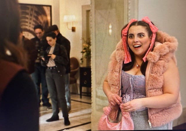 Athena: The show retconned Beanie Feldstein as an old resident and friend of Mabel’s and Tim Kono’s. She is now an absurd influencer in pink fur who goes by “Thē” because “anytime anyone searches for a band that starts with ‘The,’ I come up.” So far her chief point seems to be making Mabel insecure again about her accomplishments and her place in the world, which is a repetitive story beat that I’d hoped we’d left in the rearview. Beanie is a hoot and I think this is a wise career move for her; she’s kept a low profile since the disastrous Funny Girl, and this is a great way to remind people that she’s good at things.
